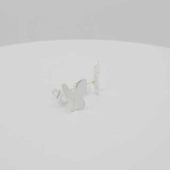 These stud earrings, handcrafted from sterling silver-plated bronze, feature a charming butterfly design, capturing the essence of graceful flight. Some photos may include other products sold separately.